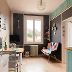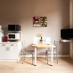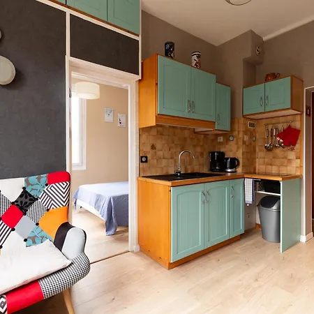 Una cocina bien equipada tiene una tostadora y un horno para una estancia cómoda en este apartamento.